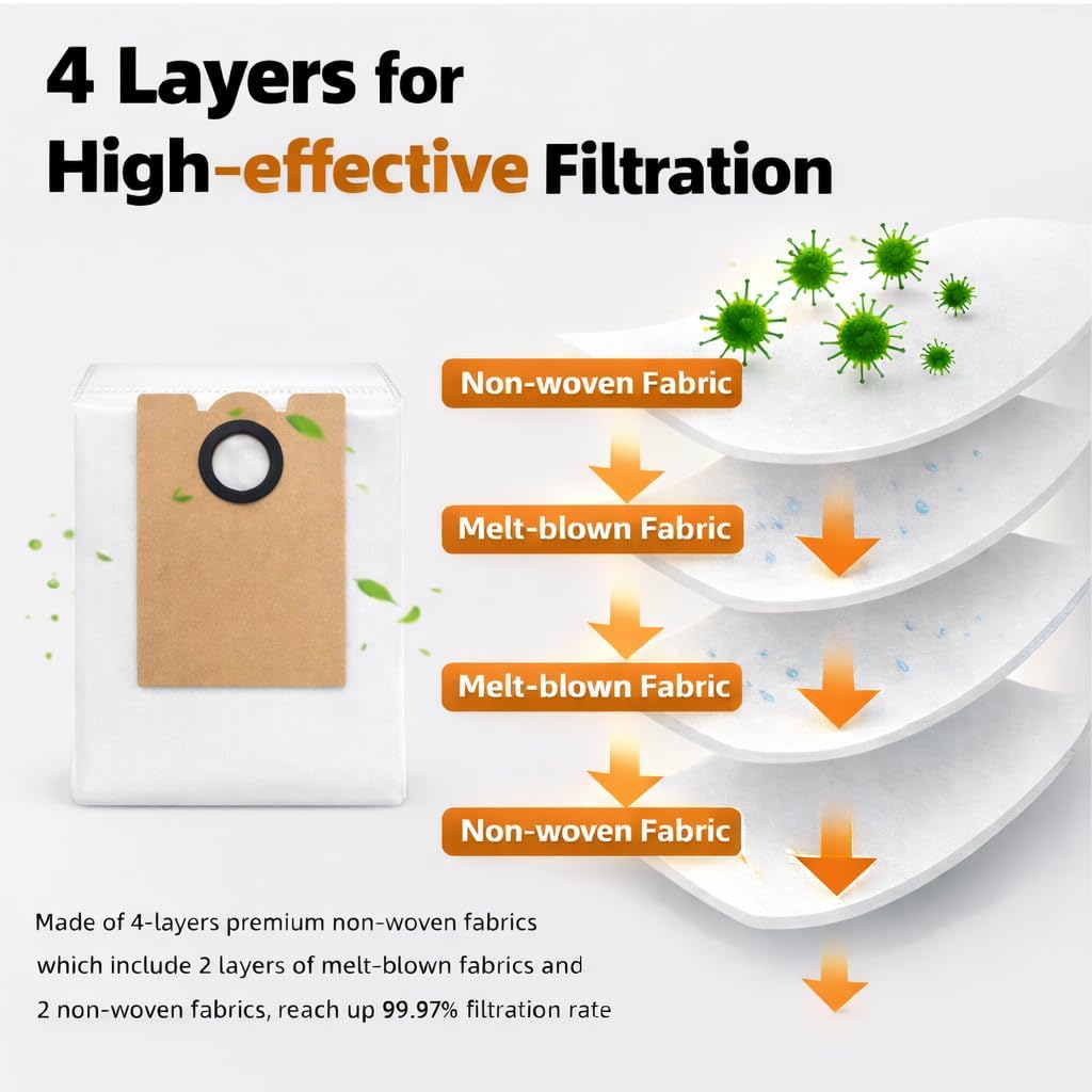 | Included Components | 1 Roller Brush,6 Side Brushes,4 Hepa Filters,4 Mop Pad,5 Dust Bags,1 Small Brush. |