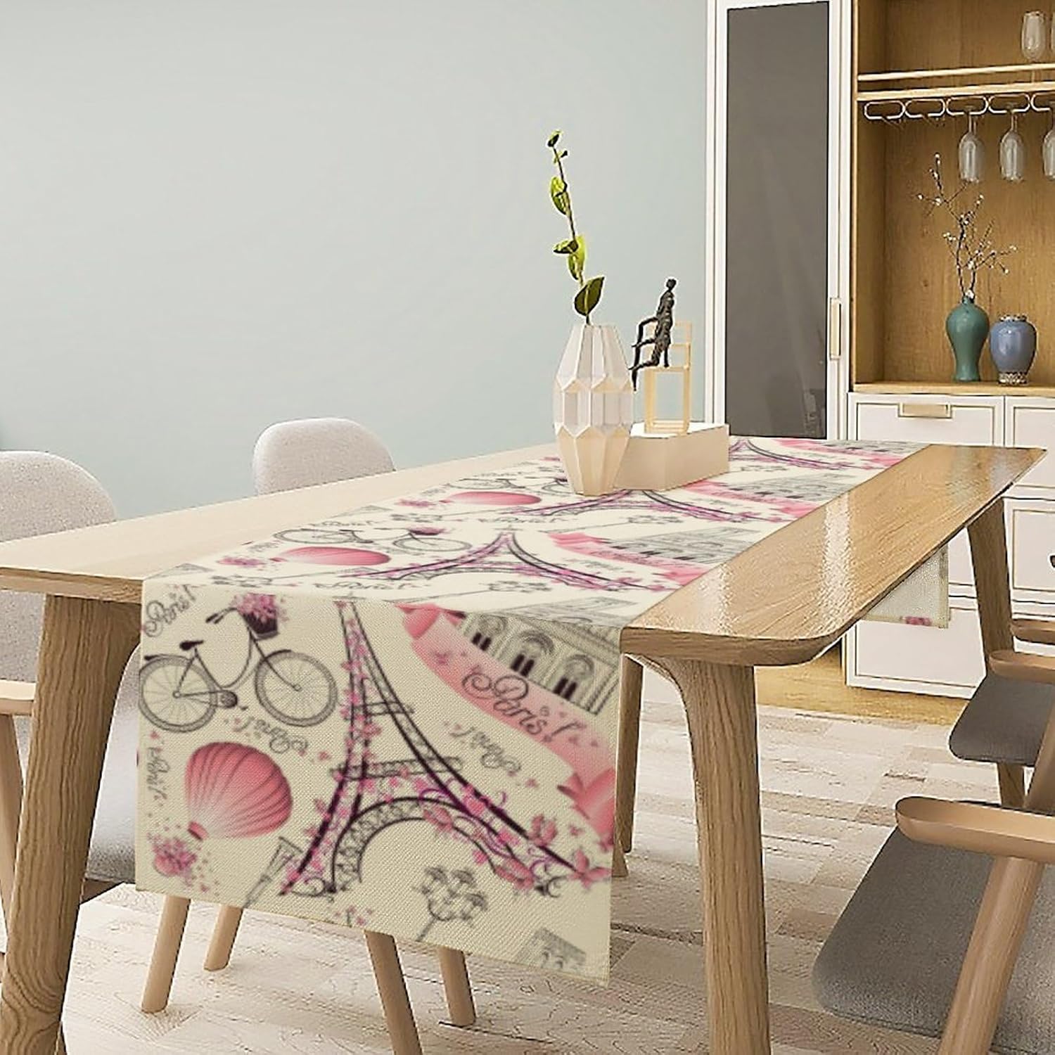 Pink Paris Eiffel Tower Table Runner, Eiffel Tower Dinner Runner for Farmhouse Kitchen Dining Table Holiday Party Decoration 13 x 90 Inch