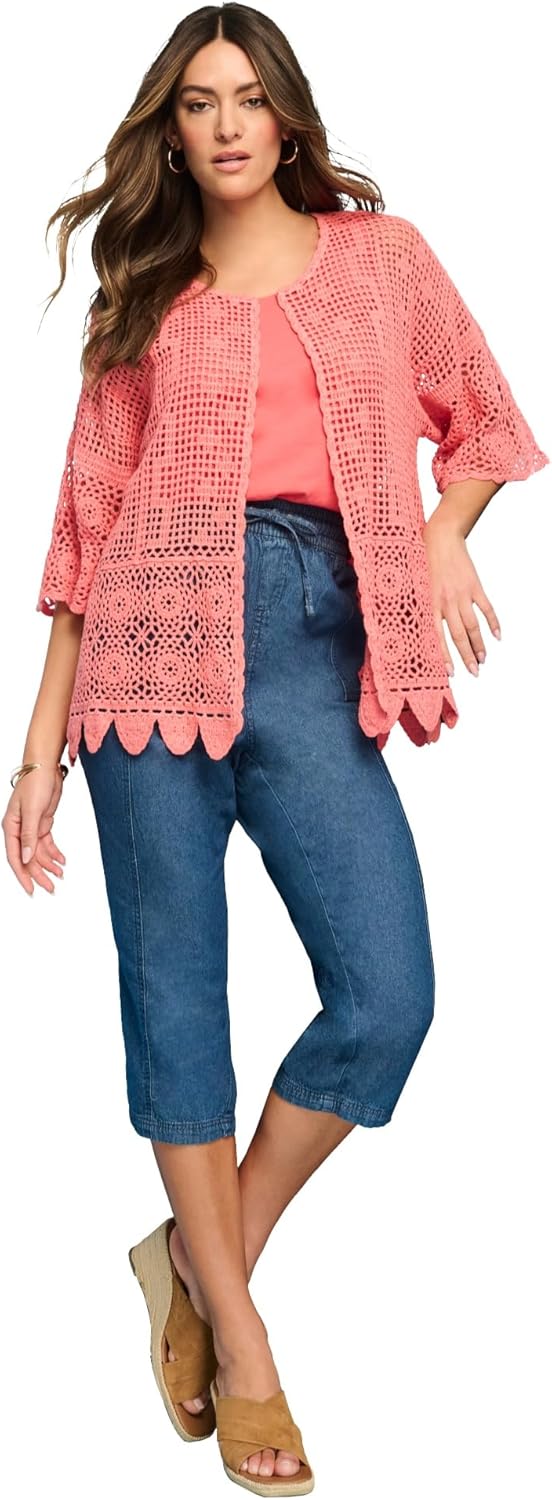 | Style Name | Plus Size Scallop Trim Crochet Cardigan |